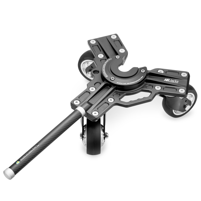 For effortless placement under your vehicle, the Nuke Performance Air Jack Skates can be equipped with optional carbon fiber handles, available in three different lengths – 330mm, 530mm, and 730mm (available here). Simply choose the size that best suits your setup.