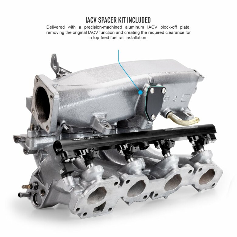 Please be aware that this fuel rail is not compatible with the SR20DET S13 engine. This version contains what is needed to run without the IACV with the integrated IACV block off plate. We also offer an IACV spacer kit version (available here).