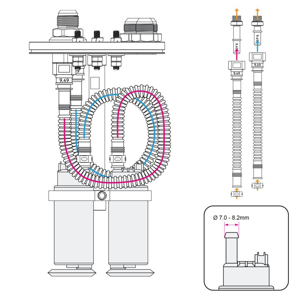Maximum pickup pipe length 90mm (3.54") / 95mm (3.74")