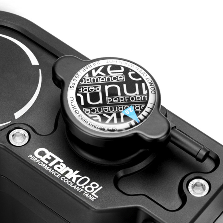By increasing system pressure, the coolant's boiling point rises, reducing the risk of localized boiling and maintaining heat transfer under load. Perfect match for the different available Coolant Expansion Tanks from Nuke Performance, as well as OEM replacement and custom installations.